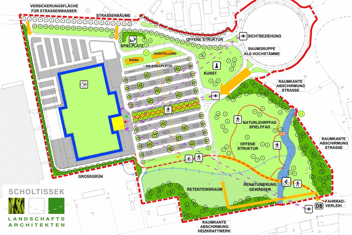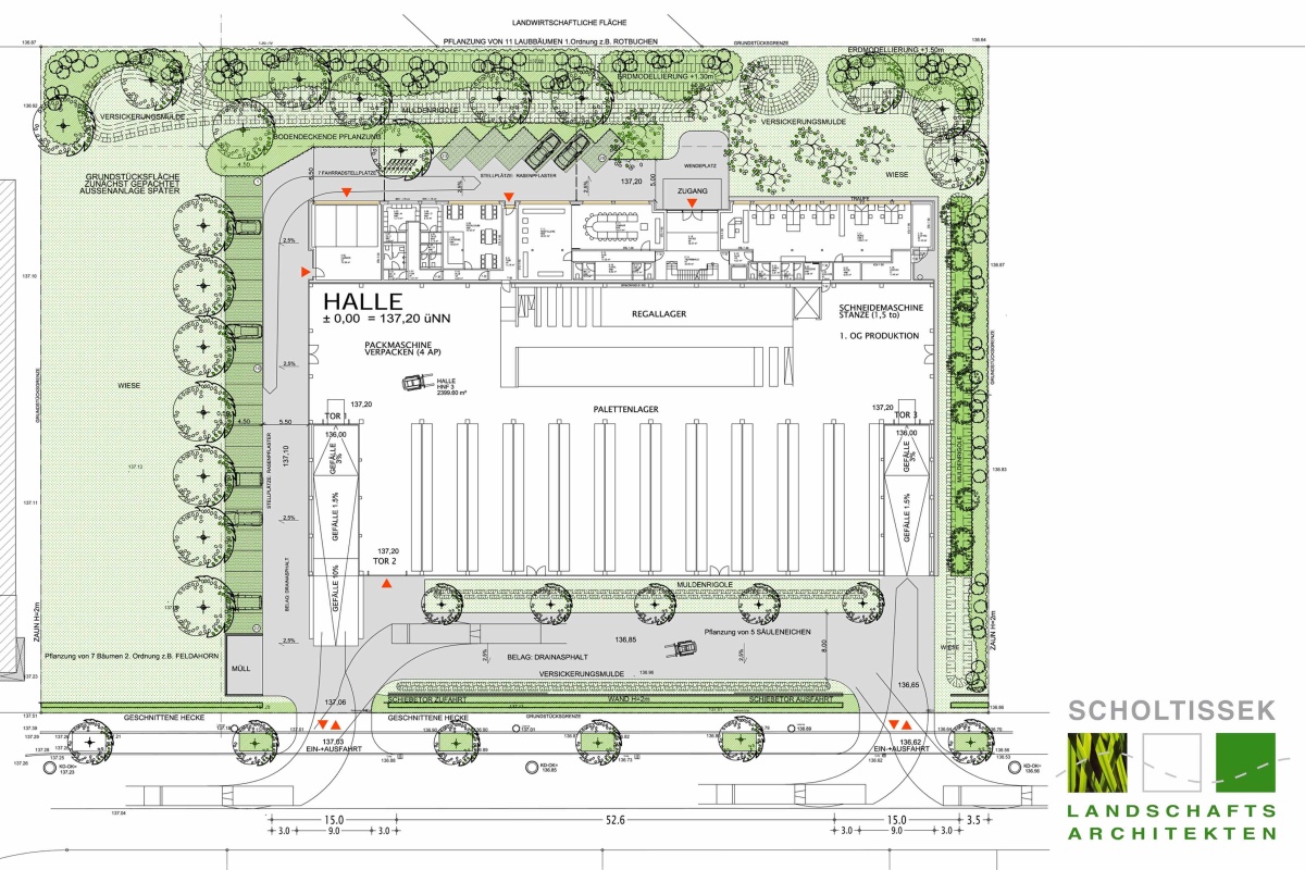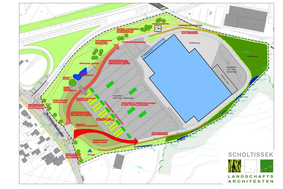 - MÖBELKONZERN NEUBAUPROJEKTE / PARKPLATZ -+ GRÜNGESTALTUNG / WORKSHOP