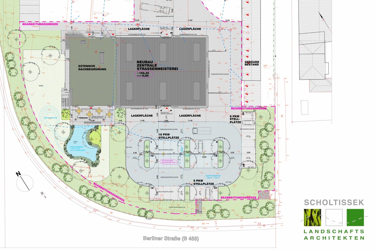 - MÖBELKONZERN NEUBAUPROJEKTE / PARKPLATZ -+ GRÜNGESTALTUNG / WORKSHOP